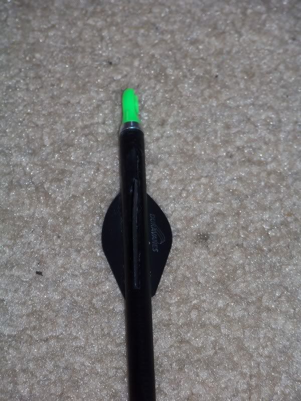 After that you want to place the arrow into the nock reciever, with the flat portion of the knob facing upwards.