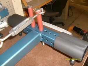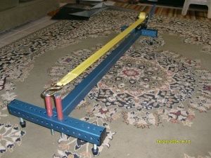 The only difference between this one pictured and the one I am producing now is the main beam is telescoping and can be shortned 24", and the rails where the bow sits has padding. I supply several different pins for bow holding capability, 4 total 2- 1/2dia X 8" and 2-3/8"dia X 8". I also have another style winch that is offered, a horozintal worm gear winch with wire rope, instead of nylon...no extra cost.