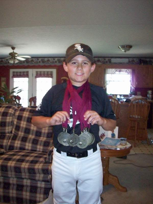 One I forgot.My son had just gotten 7 medals from basketball camp,he had a good camp.He got more medals in 1 day than any other kid got in a week.[&:]