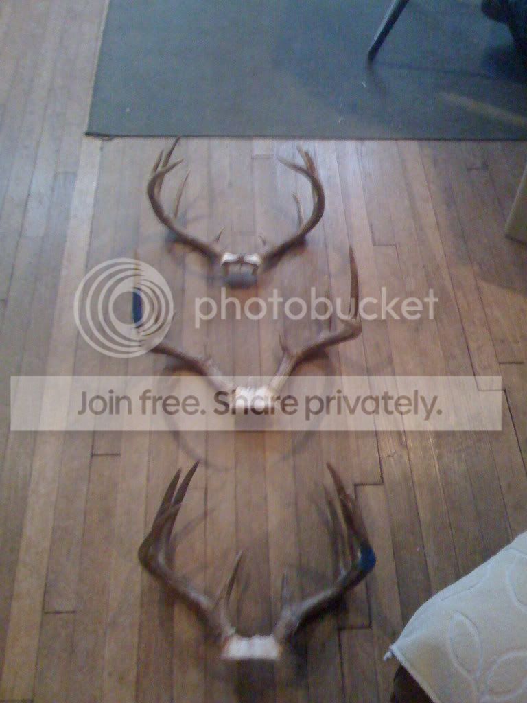 My dads a taxi, so he mounts almost all the bucks I shoot so that he can have displays of forms in his shop. These are the next three in line. The middle one and the bottom one are gonnabe first, one was a christmas present and the other was for my birthday.