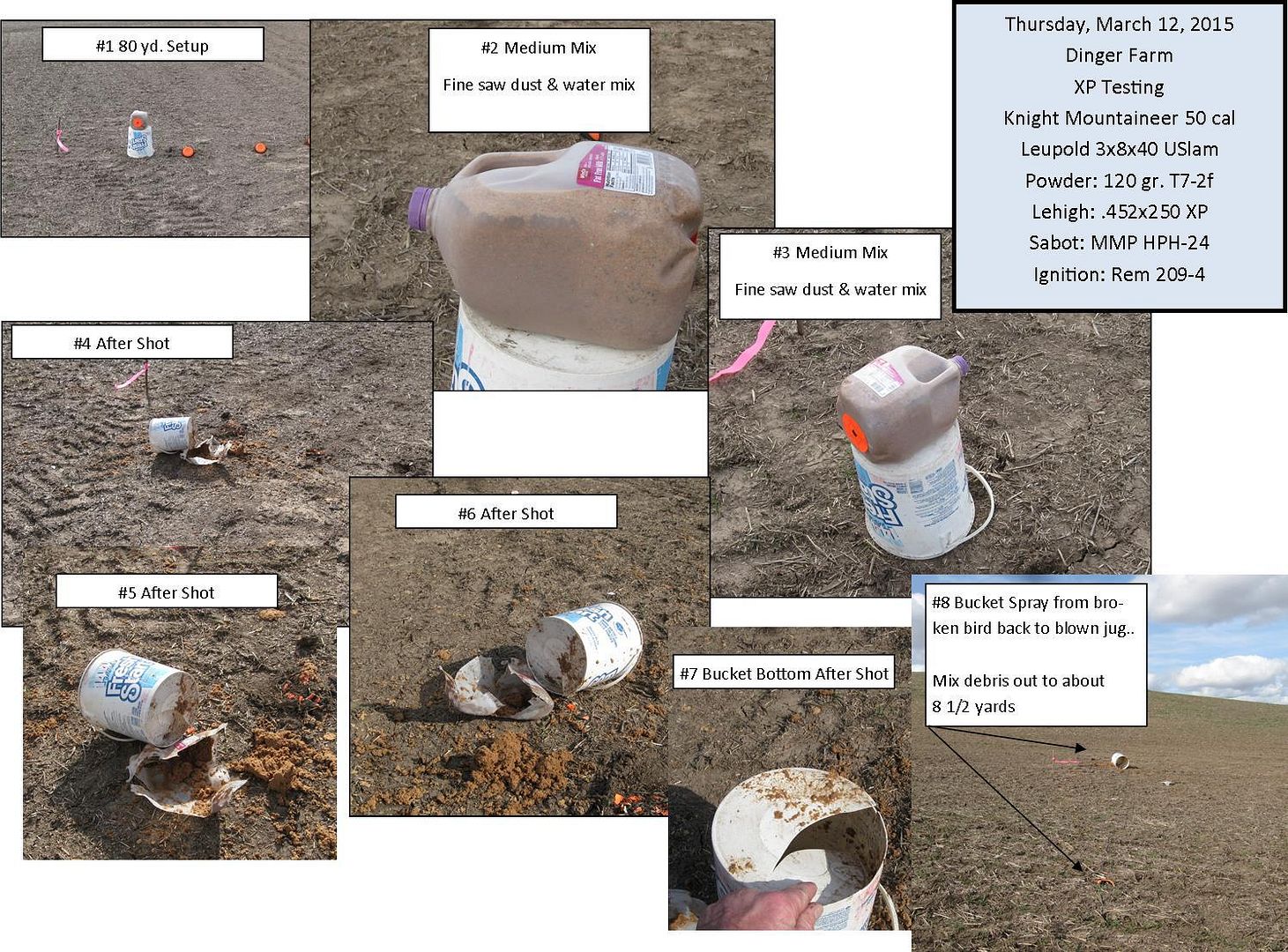 OK I was wondering - I shot one into a gallon jug with a mixture of sawdust from the radial arm and water. Mixed the two together to kinda a uniform solution. I placed it on its side on top of perfectly good white plastic bucket at 80 yards.