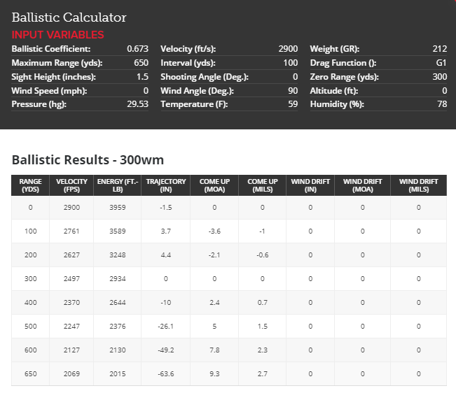 lets compare the 212 grain 30 cal, pushed at 2900 fps out of a 300 wm