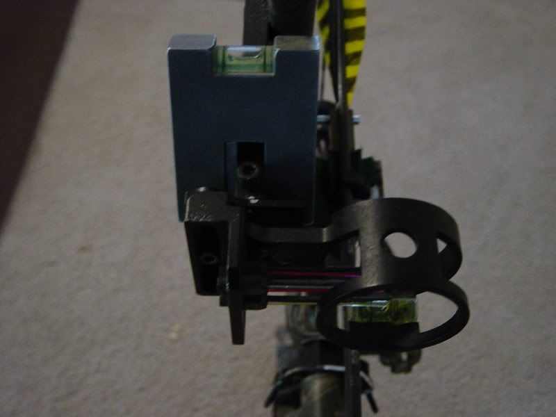4. Let bow down from full draw carefully. Make adjustment to bubble vial by loosing and tightening set screws.