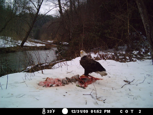 SET UP A CAMERA ON A DEER CARCASS WE SKINNED OUT IN LATE MUZZLELOADER IN VIRGINIA THIS DECEMBER. I WAS HOPING TO GET PICS OF COYOTE AND OUR RESIDENT BOBCAT THAT I HAVE ONLY GOTTEN PARTIAL PICTURES OF IN THE PAST, WELL I GOT A FEW COYOTES, CROWS, A HAWK, AND THIS GUY