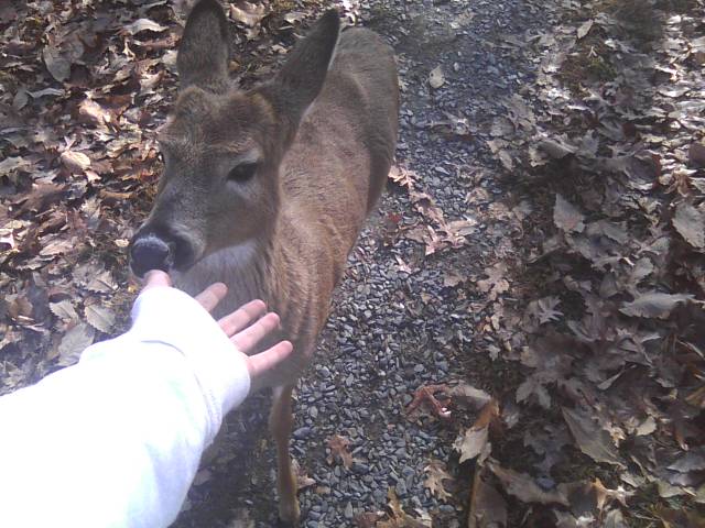 We were just walking out the front door, and my 18 year old came in and said I just petted a deer.
